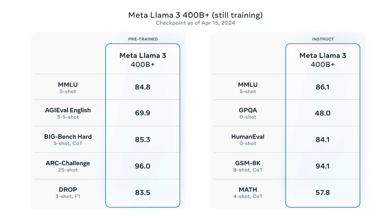 If released, the 400B version could become the first LLM available "openly" that can match the quality of its "closed" counterparts like GPT-4, Claude 3 Opus, and Gemini Ultra.
