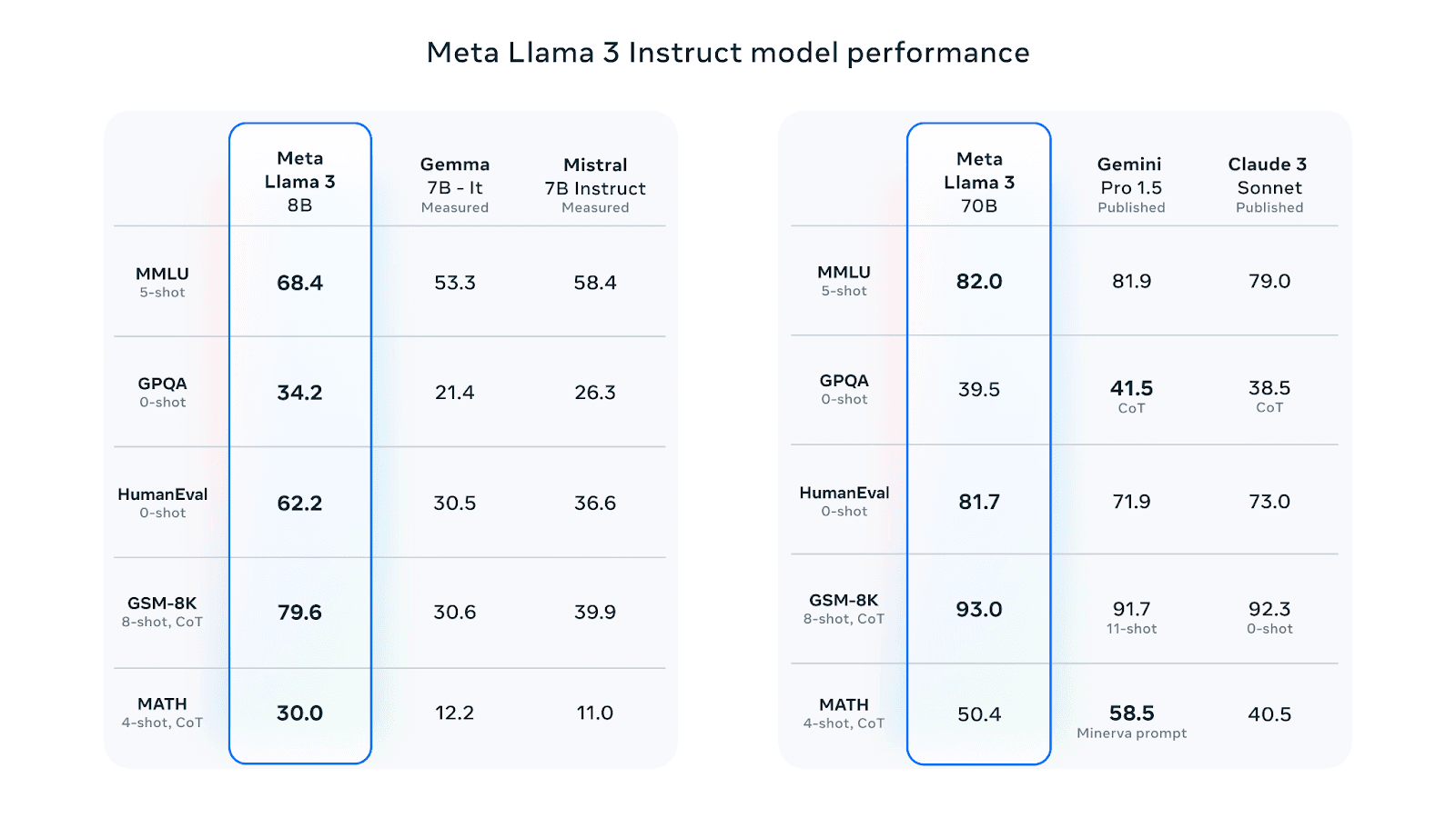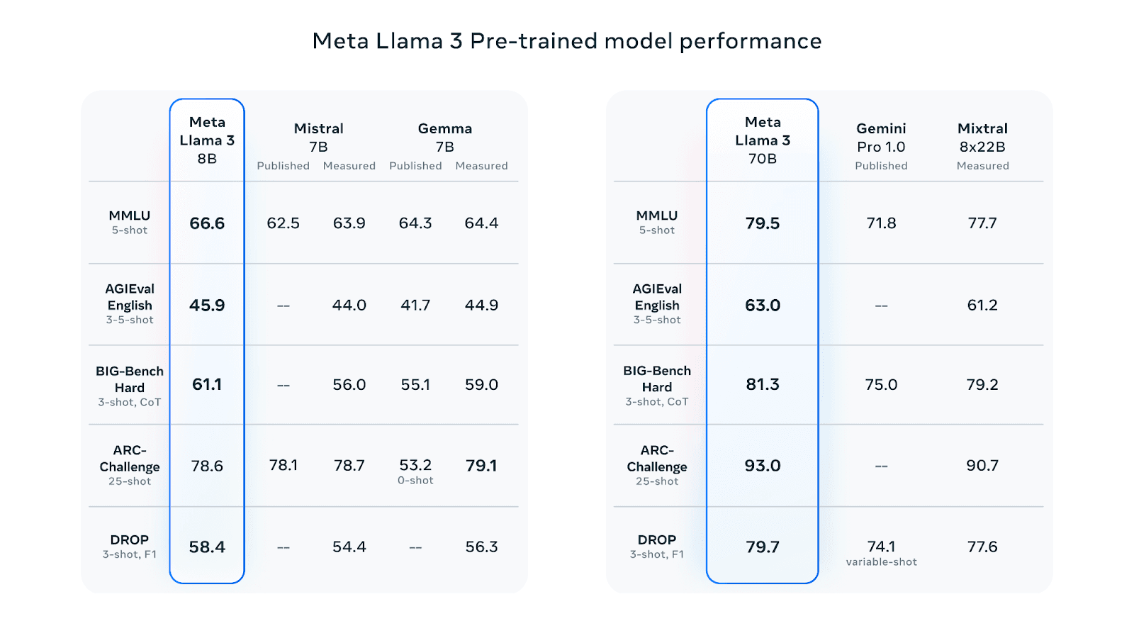 Along with launch announcements, Meta also shared benchmark scores of both its pre-trained and instruct models of Llama 3.